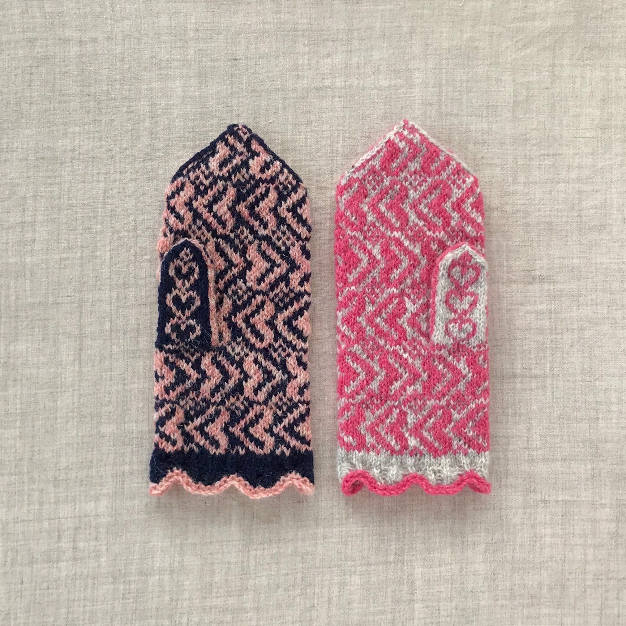 同じ模様のリピートが少なく編み応えがあるミトンです。