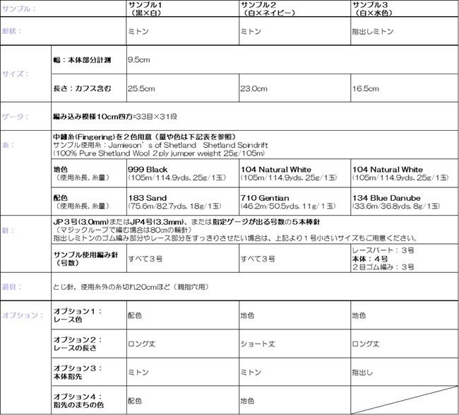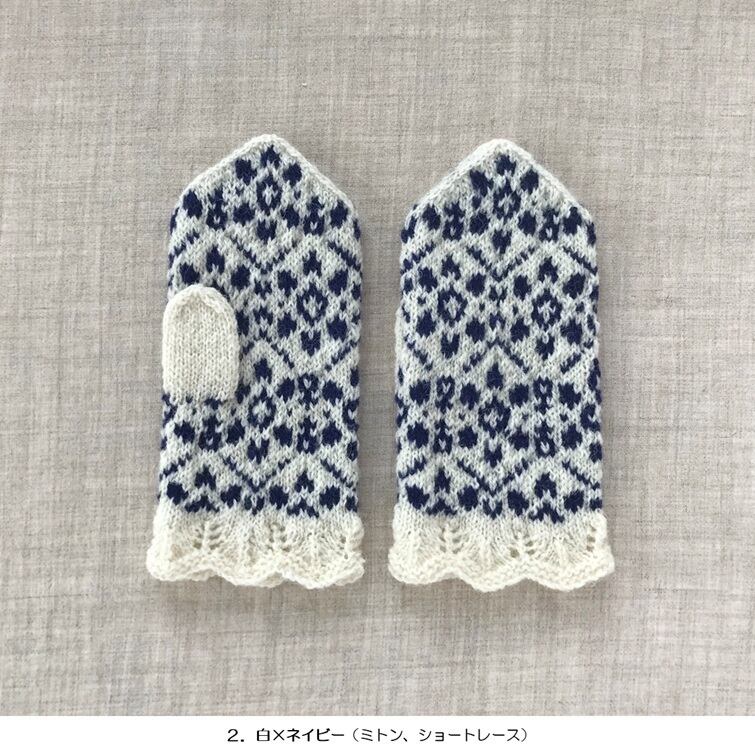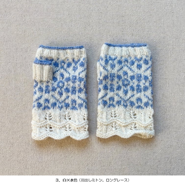 一つのパターンで「ミトン」と「指出しミトン」を編むことができます。